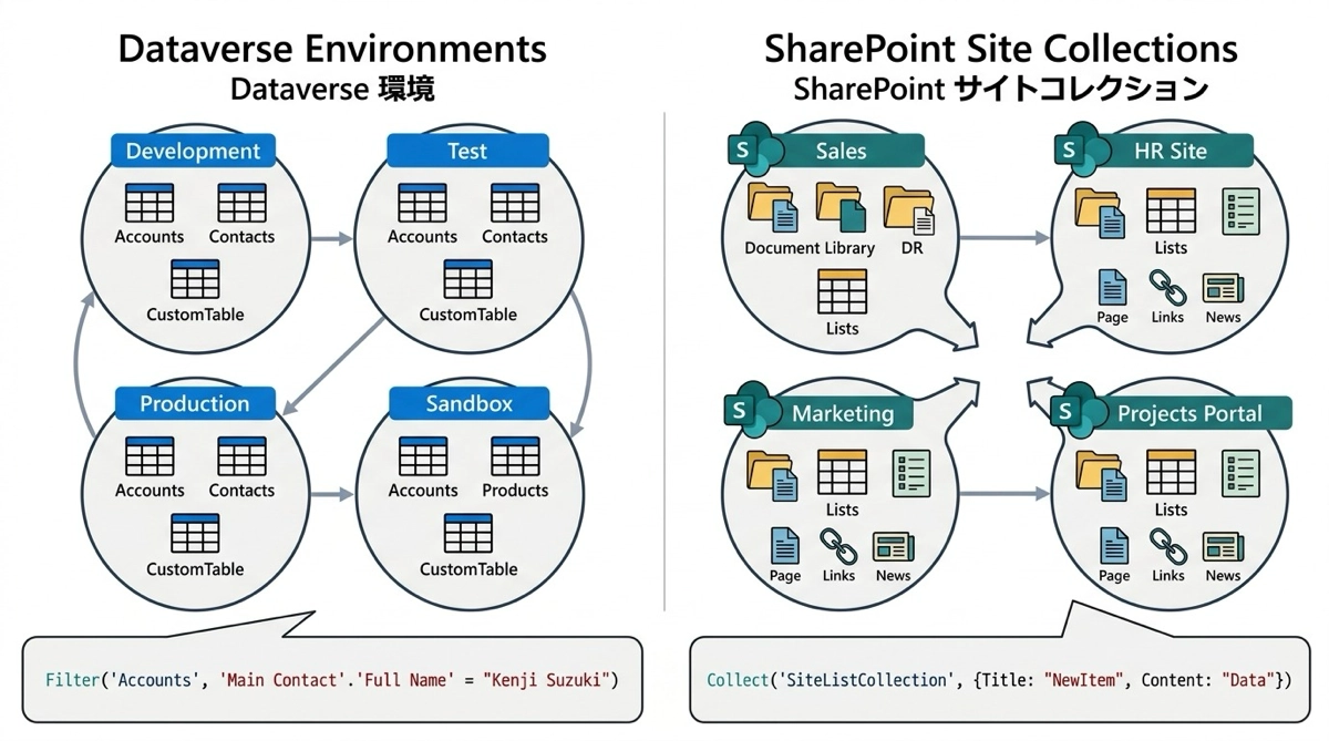 SharePointを使い慣れている方には、環境をSharePointのサイトコレクションと同じ感覚で捉えると理解しやすいです。この記事で環境の仕組みと実際の使い方を整理します。