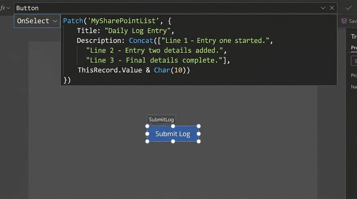 このようにして生成した文字列をPatchでSharePointの複数行テキスト列に保存することもできます。