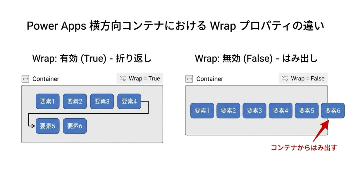 | Wrap | コンテナ | 横コンテナでの折り返し |