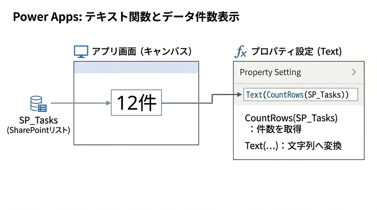 1. ラベルのTextプロパティに `Text(CountRows(データソース名))` を書く