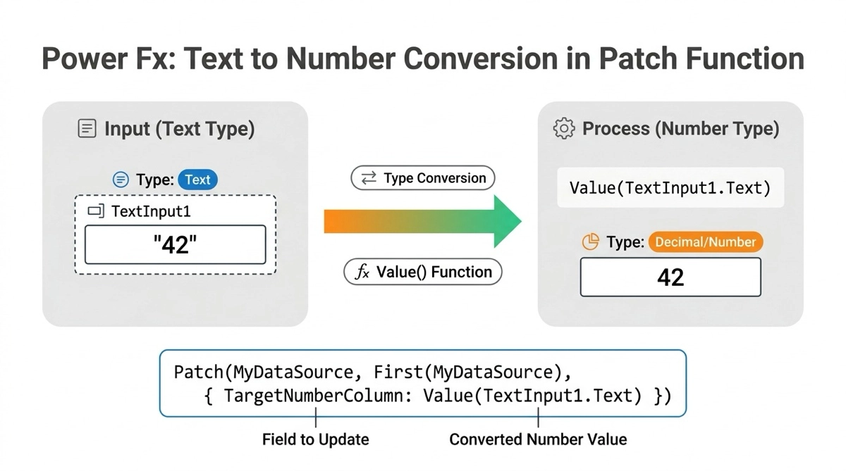 TextInput から取り出した値は常にテキスト型です。数値列に Patch しようとするとエラーになります。