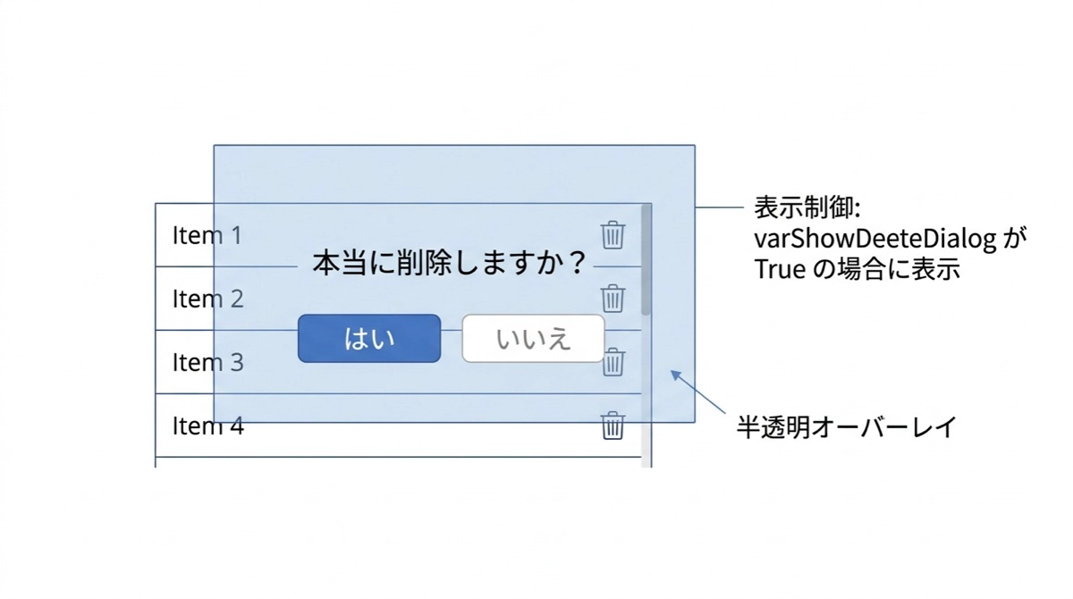 2. 確認ダイアログコンテナの Visible:varShowDeleteDialog