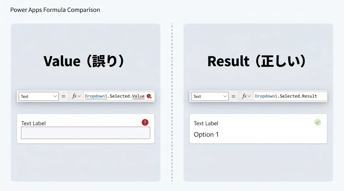 私自身、最初からDropdownと組み合わせようとして、どこで詰まっているのかわからない状態になったことがあります。シンプルな条件で動作を確認してから段階的に複雑にしていくのが、Power Apps 開発の基本的な進め方です。