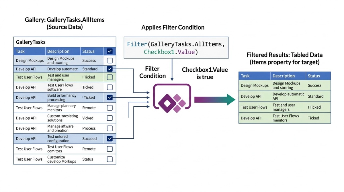 Filter(GalleryTasks.AllItems, Checkbox1.Value)