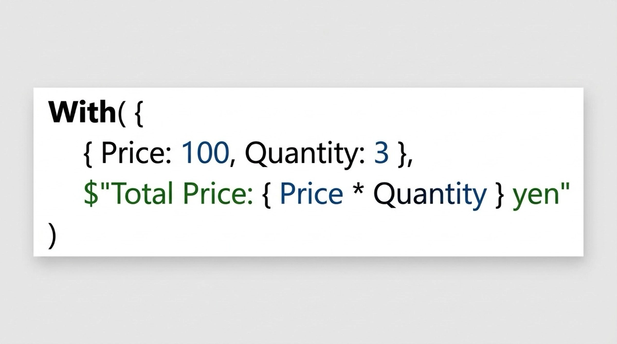 計算結果を文字列に埋め込む場合、Withで中間値を変数として持つと式が整理されます。